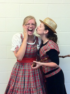 Second was a cake walk number, performed by Rebekah Massouh and Lindsay Bell. This number was well received with lots of laughter, as this number is quite funny. Rebekah portrays a boy looking for a gal, and Lindsay is the gal that he is looking for. After many tries and one slap, Rebekah finally got her gal!
